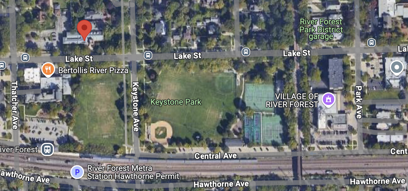 RIVER FOREST UNITED METHODIST CHURCH is located at 7970 Lake Street in River Forest. Our parking lot is located at the northeast corner of Lake and Thatcher. Accessible parking and entrance is off of the parking lot on the northwest side of the building.